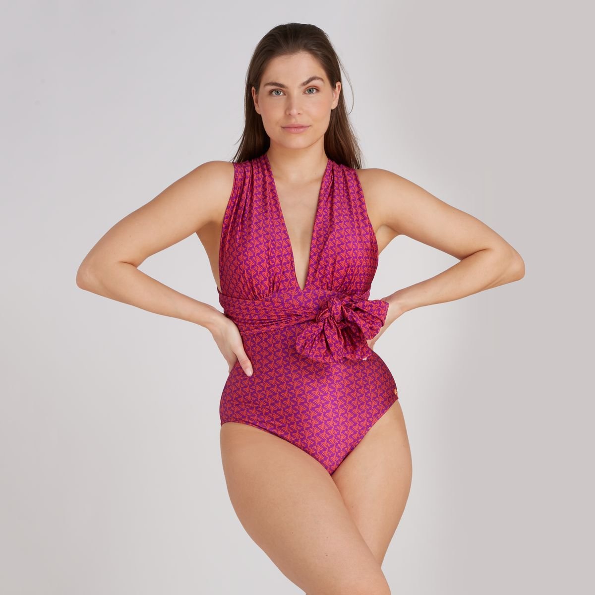Elke dag van de week een andere look bij het zwembad, aan het strand of op je balkonnetje? Dat kan met ons multiway badpak. Dankzij het slim te knopen lint draag je het steeds weer net even anders. Ook de bovenkant en schouderbandjes zijn op verschillende manieren te stylen. Zo handig! Het striklint kun je zowel aan de voorkant als aan de achterkant knopen. De bovenkant en de bandjes kun je ook draaien en knopen waardoor deze zowel over beide als over een schouder gedragen kan worden. En, helemaal anders, wat denk je van een twisteffect? Je blijft verrassen waar je ook een duik neemt! Los van de vele mogelijkheden is het ook nog erg fijn om te dragen. Het badpak is dubbellaags wat zorgt voor veel draagcomfort. De voorgevormde cups geven ook een prachtaccent op je decolletĂ©. Zo mooi dat je ‘m zelfs als top kunt dragen! Dit multitalent is verkrijgbaar in meerdere kleuren en prints.