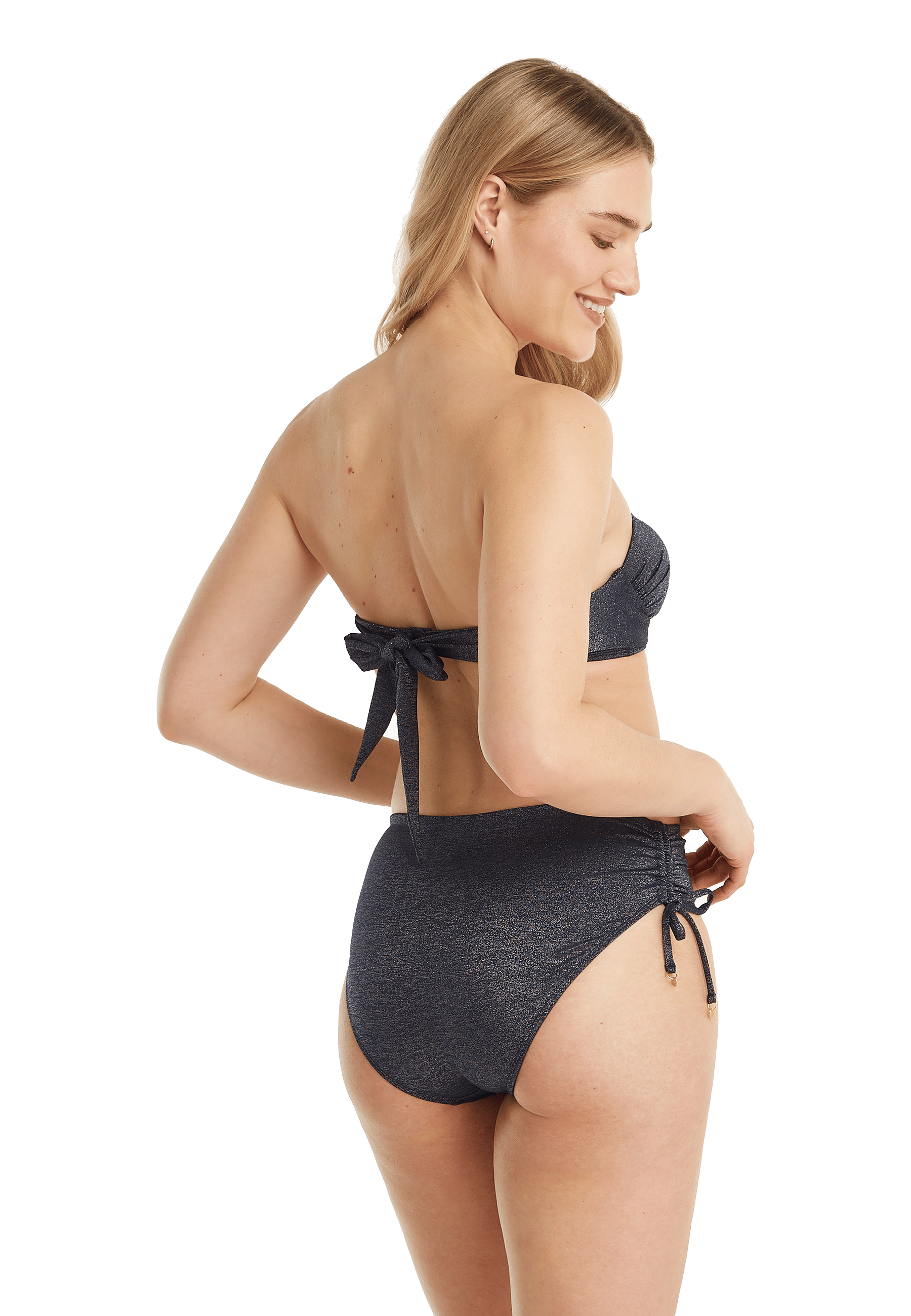 Ons bikini bottom midi bow broekje heeft wat bredere zijkanten voor een comfortabele pasvorm. De strikjes zorgen juist weer voor een speelse look. Het broekje is wat breder uitgesneden aan de achterkant waardoor de billen wat bedekter zijn. Het broekje wordt halverwege de taille gedragen. Leuk om te combineren met onze andere tops uit de beach collectie.