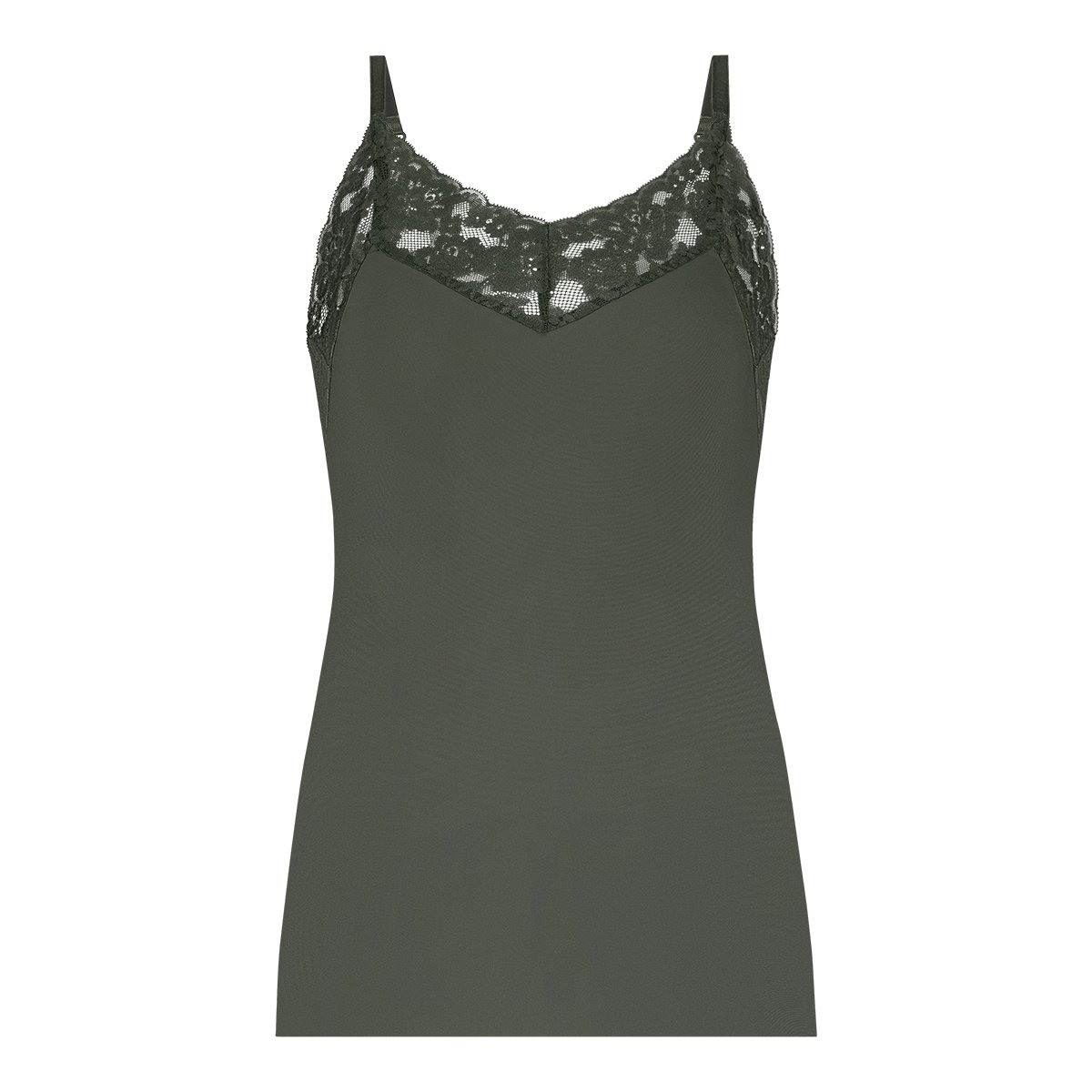Spaghetti top met kant forest mist