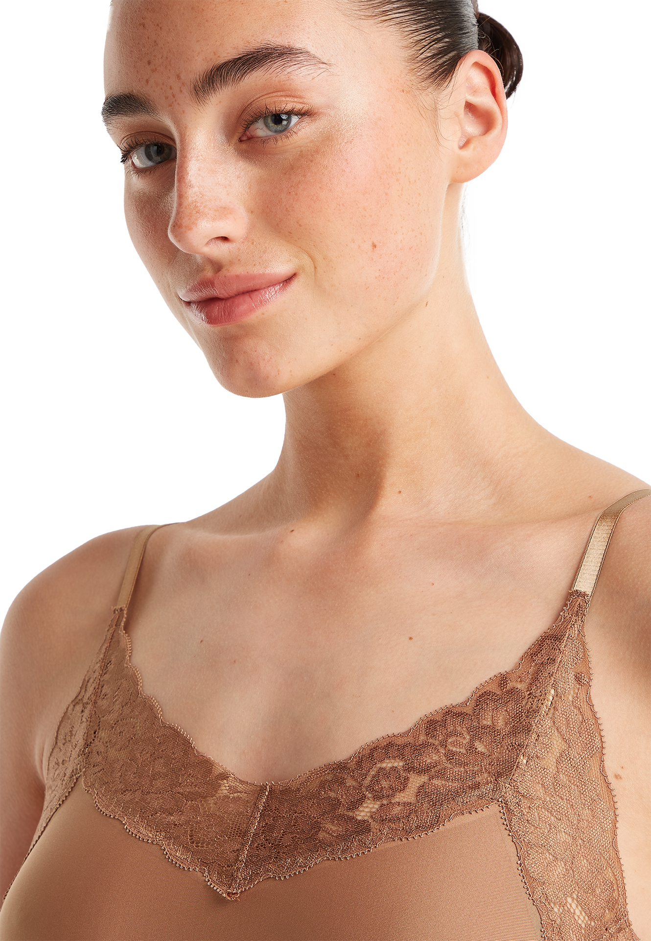 spaghetti top met kant hazelnut