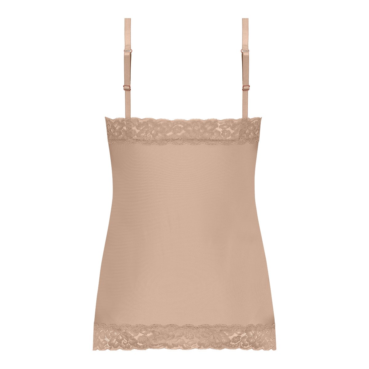 De Secrets spaghetti top met kant is flatterend door de 88% polyester en 12% elastaan stevig, maar ook ademend. De naden zijn super plat doordat ze op elkaar geplakt zijn, hierdoor draag je de spaghetti top als een tweede huid onder je kleding. De elastische bandjes zijn makkelijk verstelbaar. De fluweelzachte afwerking aan de onderkant van de spaghetti top en in de halslijn zorgen ervoor dat de top den hele dag goed blijft zitten. De spaghetti top is er in verschillende kleuren en in de maten S t/m XL