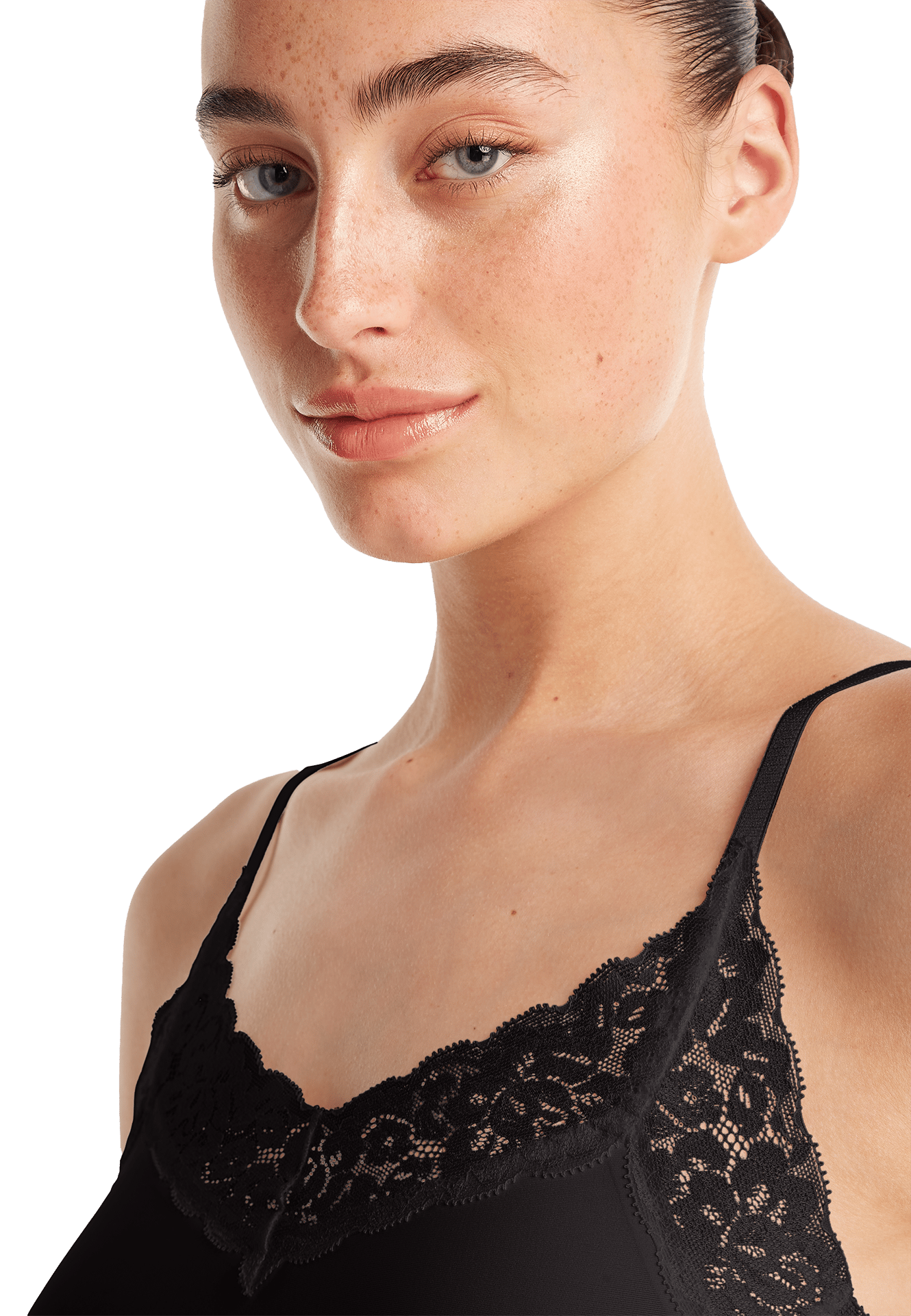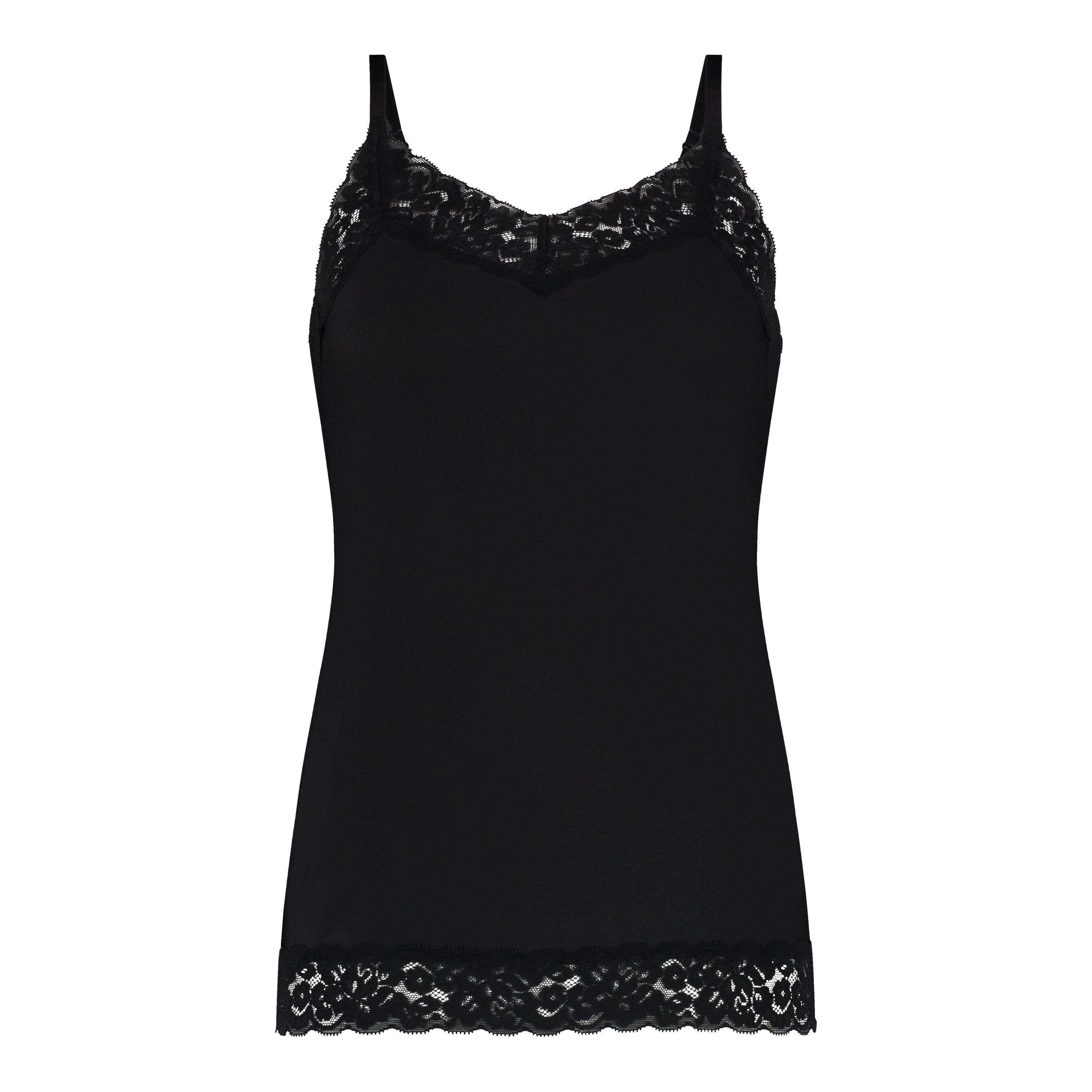 spaghetti top met kant zwart