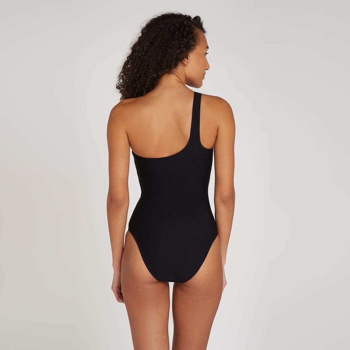 Laat jezelf stralen in ons elegante swimsuit met één schouder en gespdetail! Voorzien van voorgevormde cups voor een flatterende pasvorm en comfort. De voering rondom zorgt voor luxe zachtheid. Een siliconen bies langs de halslijn houdt het swimsuit op zijn plaats, terwijl subtiele belijning aan de zijkanten je silhouet accentueert. Met dit stuk omarm je niet alleen stijl, maar ook het vertrouwen om te stralen, waar je ook bent.