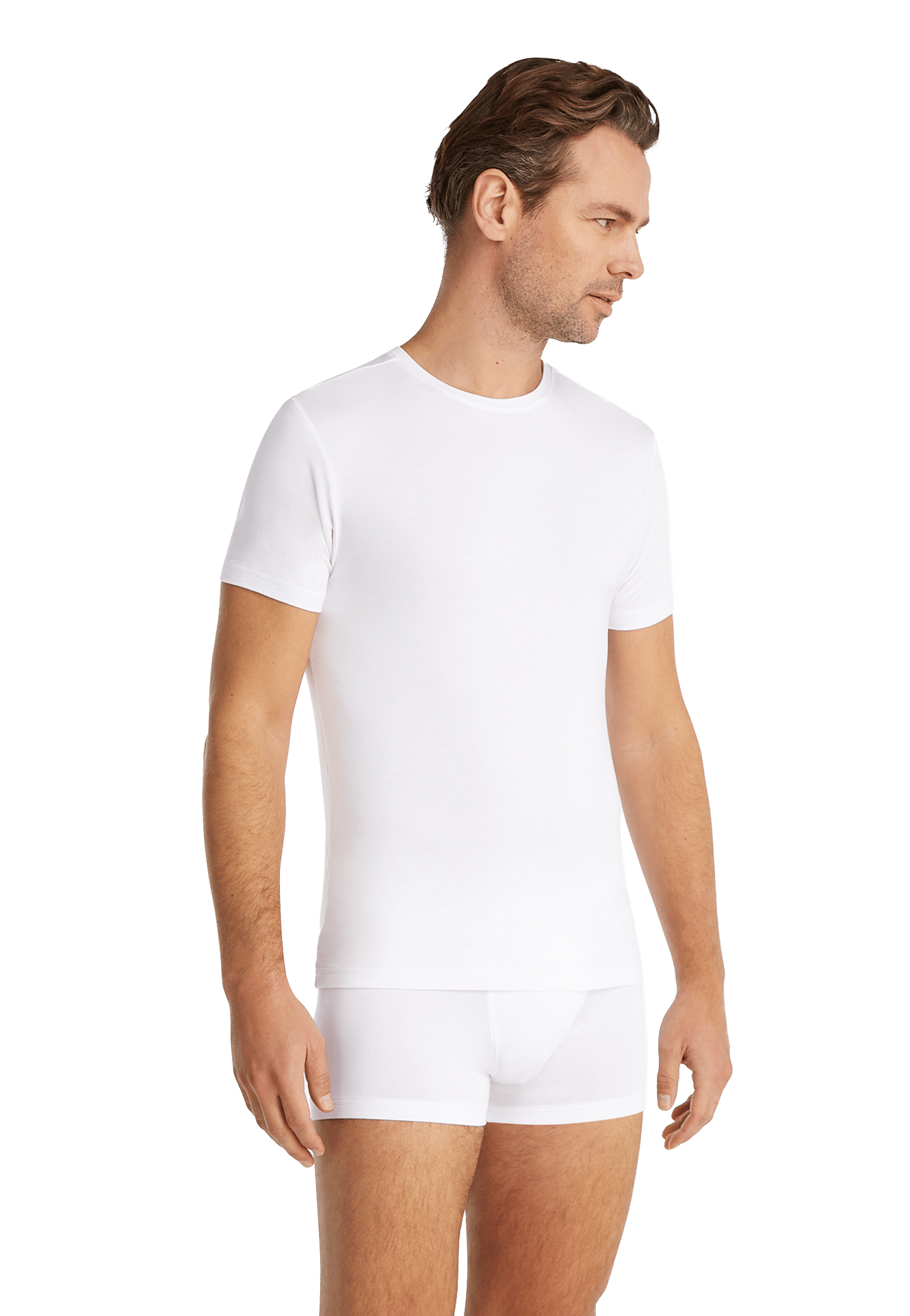Heren T-shirt met ronde hals van TENCEL™ Modal. Het T-shirt heeft een comfortabele pasvorm en voelt zijdezacht aan op de huid. Dankzij de ademende, temperatuurregulerende stof is het T-shirt ideaal voor zowel dagelijks gebruik als sportieve activiteiten.