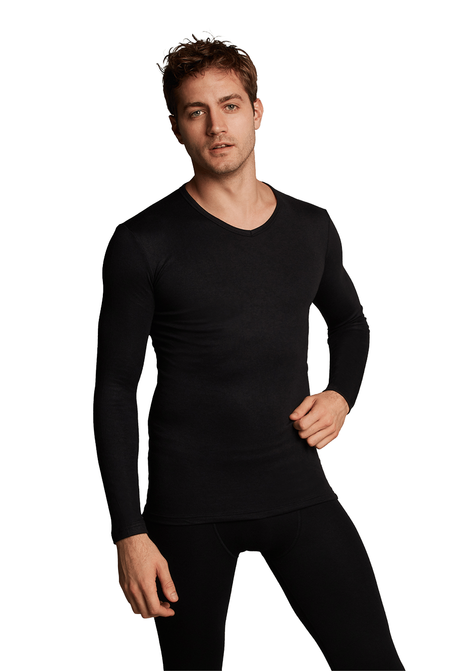 Thermo t-shirt lange mouwen v-hals zwart